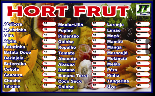 TABELA DE PREÇOS DE FRUTAS E LEGUME REFERÊNCIA : 01